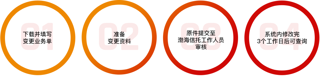1、委托人為自然人的需填寫變更業(yè)務申請單,同時提供身份證復印件、收益賬戶復印件、合同簽署頁復印件、銀行證明(包括姓名、身份證號、新銀行卡號,加蓋銀行柜臺業(yè)務章),委托人需要在所有提供的資料上簽字并按手??;